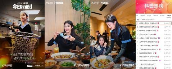 前中国女足门将赵丽娜在「今日我当班」中跨界化身上海太二酸菜鱼的当班人,迎宾揽客、与顾客交流点单。从球场到餐厅,从运动员到服务者,这种身份反差迅速制造话题声量,#赵丽娜上海体验一日美食店长 登顶抖音同城榜TOP1。
