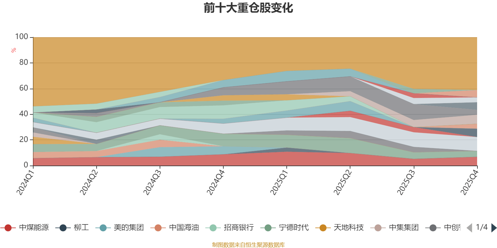 截至2025年四季度末,基金十大重仓股分别是徐工机械、紫金矿业、中煤能源、思源电气、杰瑞股份、山推股份、宁德时代、亿纬锂能、三星医疗、阳光电源。