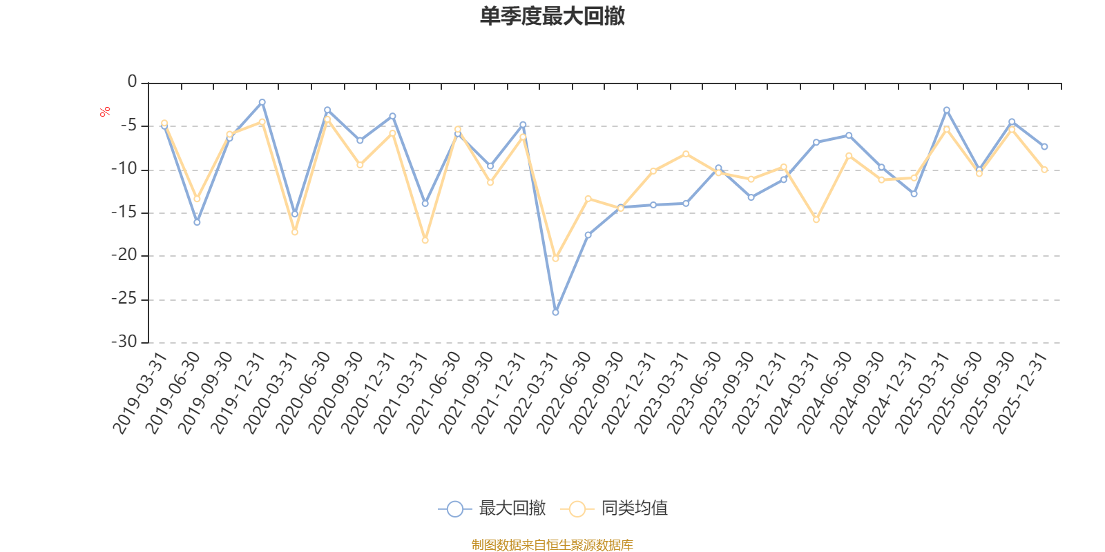 截至1月22日,基金近三年最大回撤为34.51%,同类可比基金排名125/254。单季度最大回撤出现在2022年一季度,为26.51%。