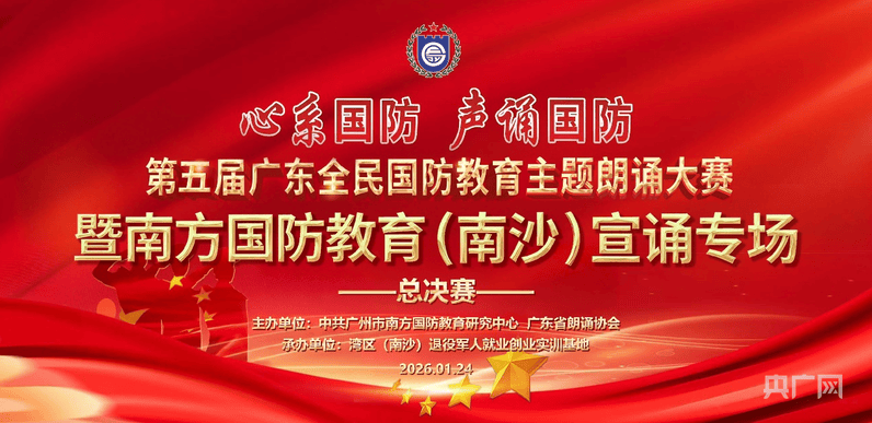 央广网广州1月25日消息(记者张顺鹏)近日,第五届广东全民国防教育主题朗诵大赛总决赛暨南方国防教育(南沙)宣诵专场在南沙区退役军人就业创业实训基地举行。来自全省的优秀朗诵者齐聚一堂,以声为媒,传递爱国情怀;以诵为志,筑牢国防意识。本次活动由广州市南方国防教育研究中心、广东省朗诵协会联合主办,以“心系国防 声诵国防”为核心主题。