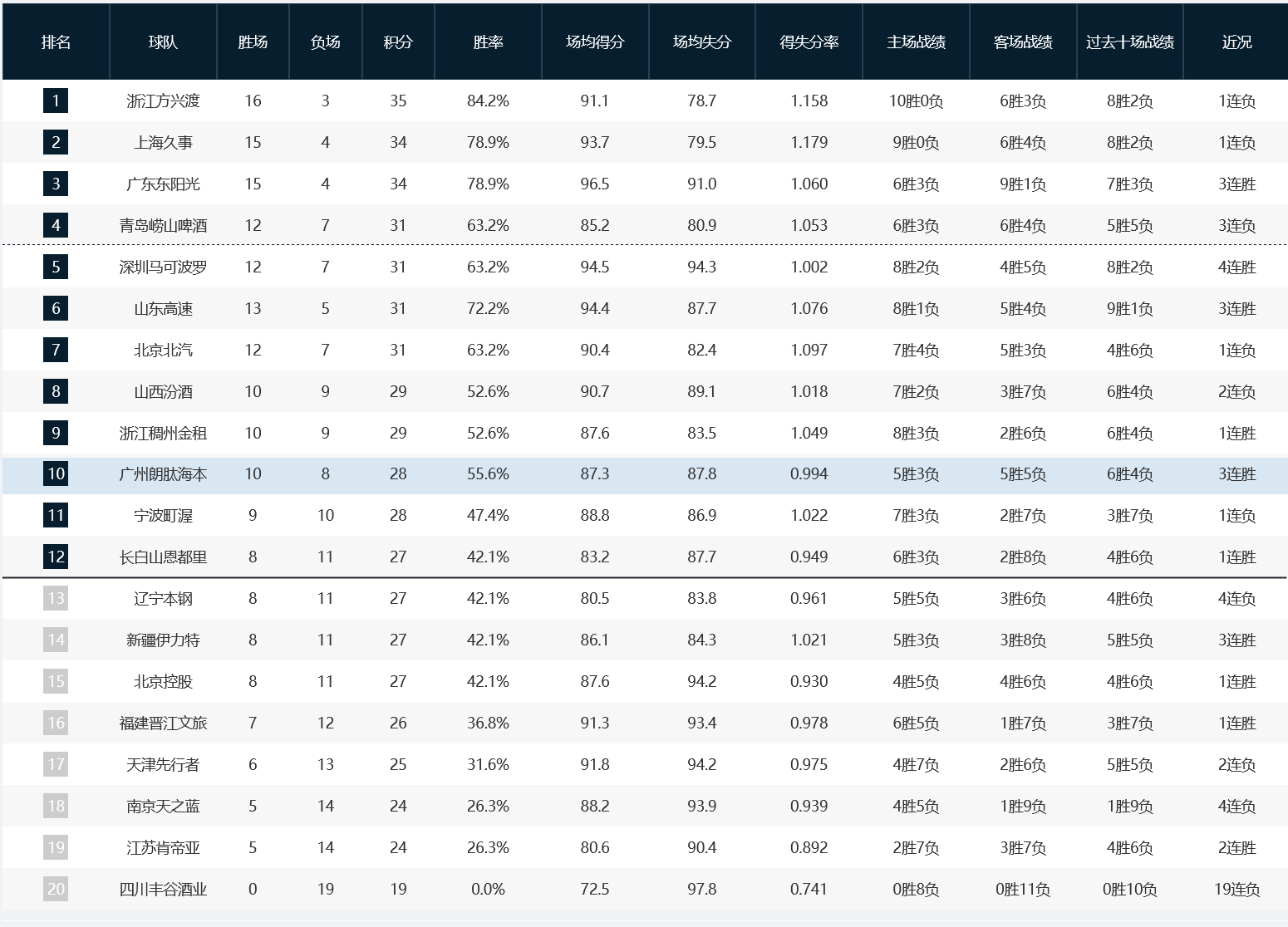 原创 CBA积分榜:广厦、上海仍位居前二,深圳升至第5+四川队19连败