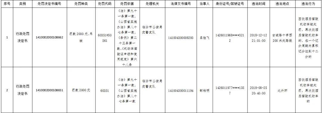 临汾市公安局交通警察支队直属一大队于2025年12月30日在《山西临汾交警》微信公众号向李怀忠等101名驾驶人因驾驶机动车发生交通违法行为公告送达了《行政处罚告知书》,因为当事人在公告期间内未进行陈述、申辩权,也未要求举行听证,临汾市公安局交警支队直属一大队于2026年01月12日作出了《行政处罚决定书》,由于当事人在其法定的住所查无下落,支队直属一大队无法将《行政处罚决定书》直接送达、邮寄送达给当事人,根据《道路交通安全违法行为处理程序》第一十一条的规定,将《行政处罚决定书》予以公告送达,自公告发布之日起经过六十日即视为送达。