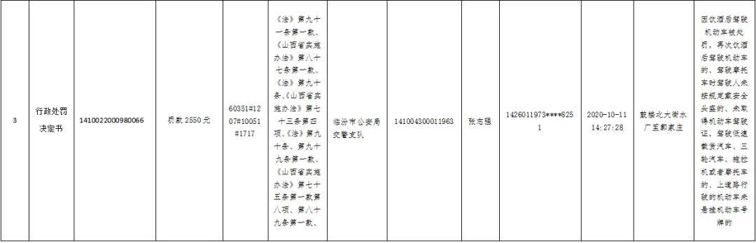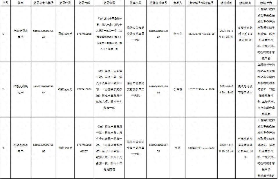 以上明细中,《中华人民共和国道路交通安全法》简称《法》;《中华人民共和国道路交通安全法实施条例》简称《条例》;《山西省实施<中华人民共和国道路交通安全法>办法》简称《山西省实施办法》