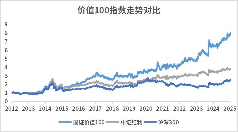 在市场回调阶段,价值风格的低估值能提供更高的安全边际,成为市场调整期的“避风港”。价值ETF跟踪的国证价值100指数采用“低估值+高分红+高自由现金流率”的筛选标准,精准锁定市场中的低估优质企业。当市场沉迷于短期热点时,低估值资产的价值往往被忽视,但历史证明,“被低估却质地优良”的企业,能够在维持“抗风险”基本盘的同时实现估值抬升。