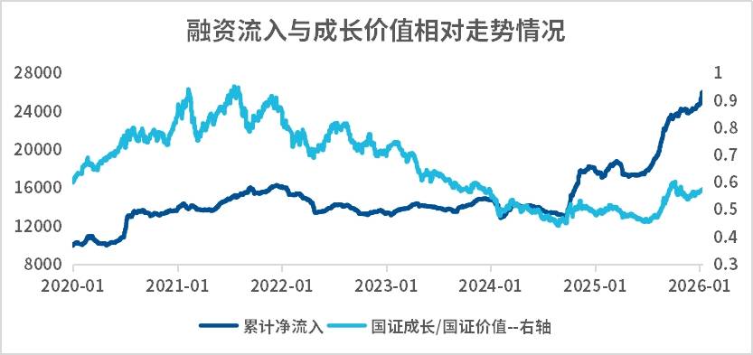 叠加资金面的变化是本次价值风格崛起的“催化剂”。前期成长风格的持续占优,与融资资金的集中流入密切相关,杠杆资金的追涨行为进一步放大了成长板块的估值波动。但近期杠杆资金的有望降温,成长风格的弹性可能受到压制。