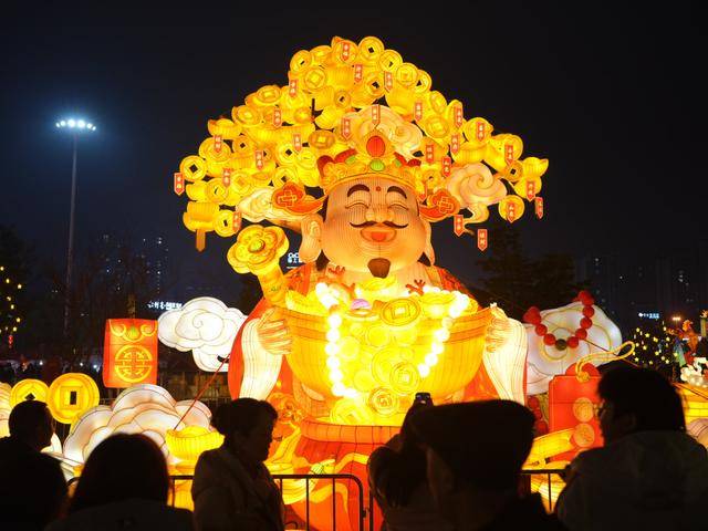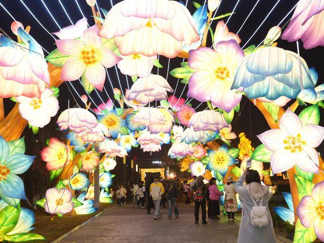 流光溢彩的灯展,也吸引了数千名游客与市民。当晚人潮涌动,来自四面八方的市民游客汇聚于此,手持手机,屏息以待。7点,随着全场数千人整齐划一的倒计时呐喊,现场氛围被瞬间点燃。近二十组非遗彩灯、氛围灯光次第点亮,恢宏气势与梦幻细节交织,引来阵阵惊叹与欢呼。