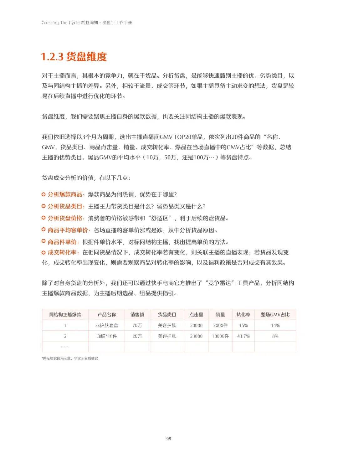 操盘手的工作以账号诊断为起点,通过分析直播间运营数据(如近3个月的GMV、新增粉丝数、成交转化率等)、粉丝结构(潜客、沉默粉丝、活跃粉、新客、老客的占比与转化路径)、货盘特征(GMV TOP20单品的爆款特征)以及流量来源(自然流量与商业化流量的占比及ROI表现),精准定位主播问题。在运营层面,操盘手采用“S-A-B”营销活动模型,通过不同类型的大场活动(S级大场、A级大场、B级日播)实现“日常练兵—集中爆发—持续沉淀”的增长循环。同时,操盘手把控直播前、中、后的全流程精细化运营,包括组品排品、讲品框架、节奏把控等,并通过流量投放策略(如直播前预热、直播中直投)优化流量获取。GPM(千次观看创造的销售额)作为重要指标,帮助直播间获得更多自然流量倾斜。