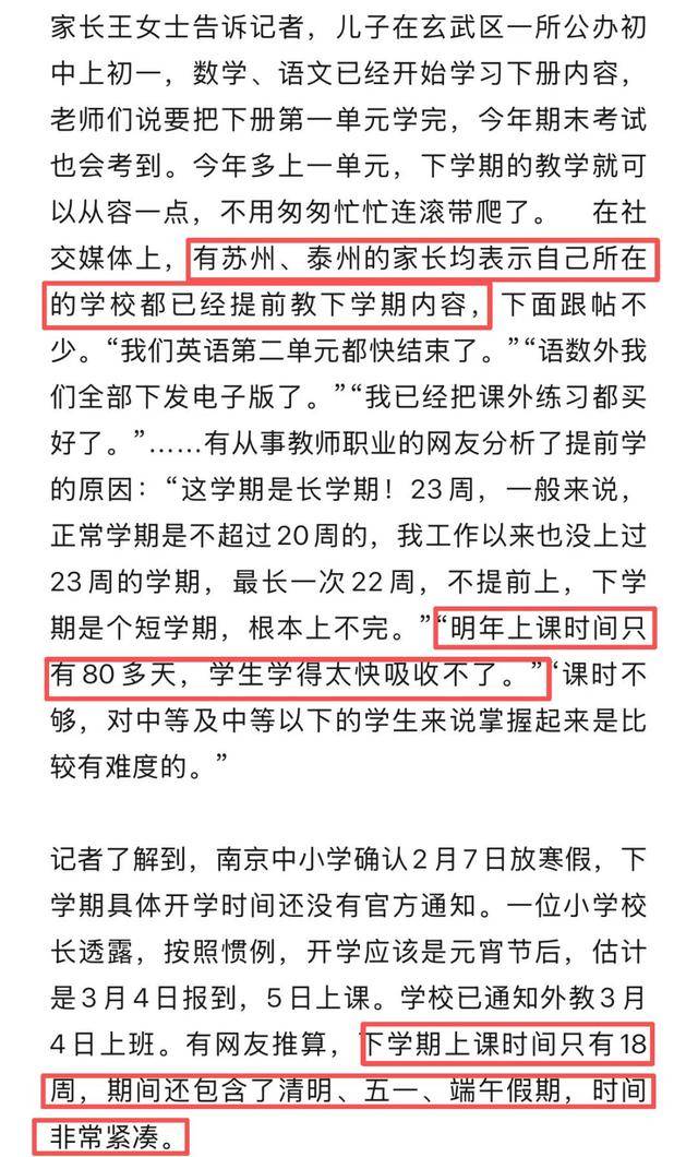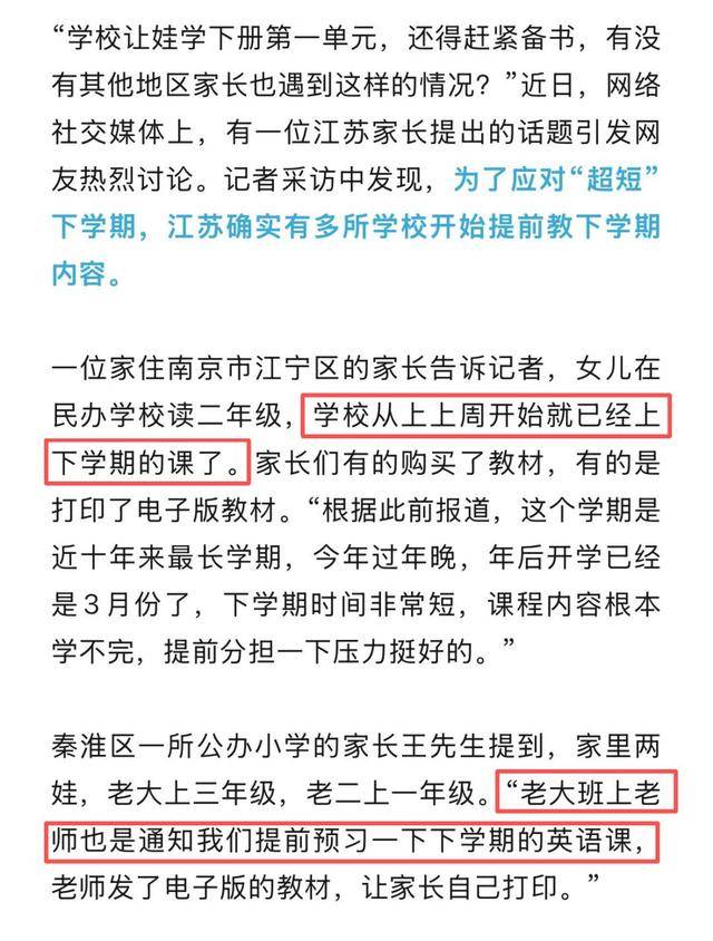 不止是江苏,网上也有湖北的家长反映,武汉也有多所学校通知提前学下册。继“超长学期”之后即将迎来“超短学期”,老师安排“提前学”其实也是无奈之举。