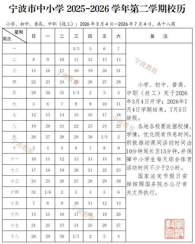 很多家长开始关心下学期的校历