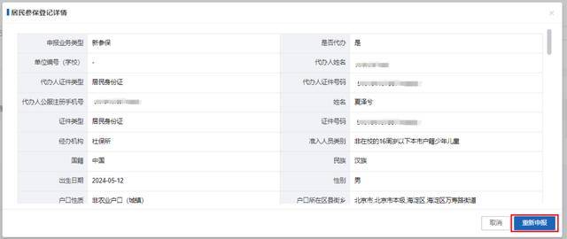 9.点击【重新申报】按钮,进入【职工转居民参保登记】功能进行重新申报