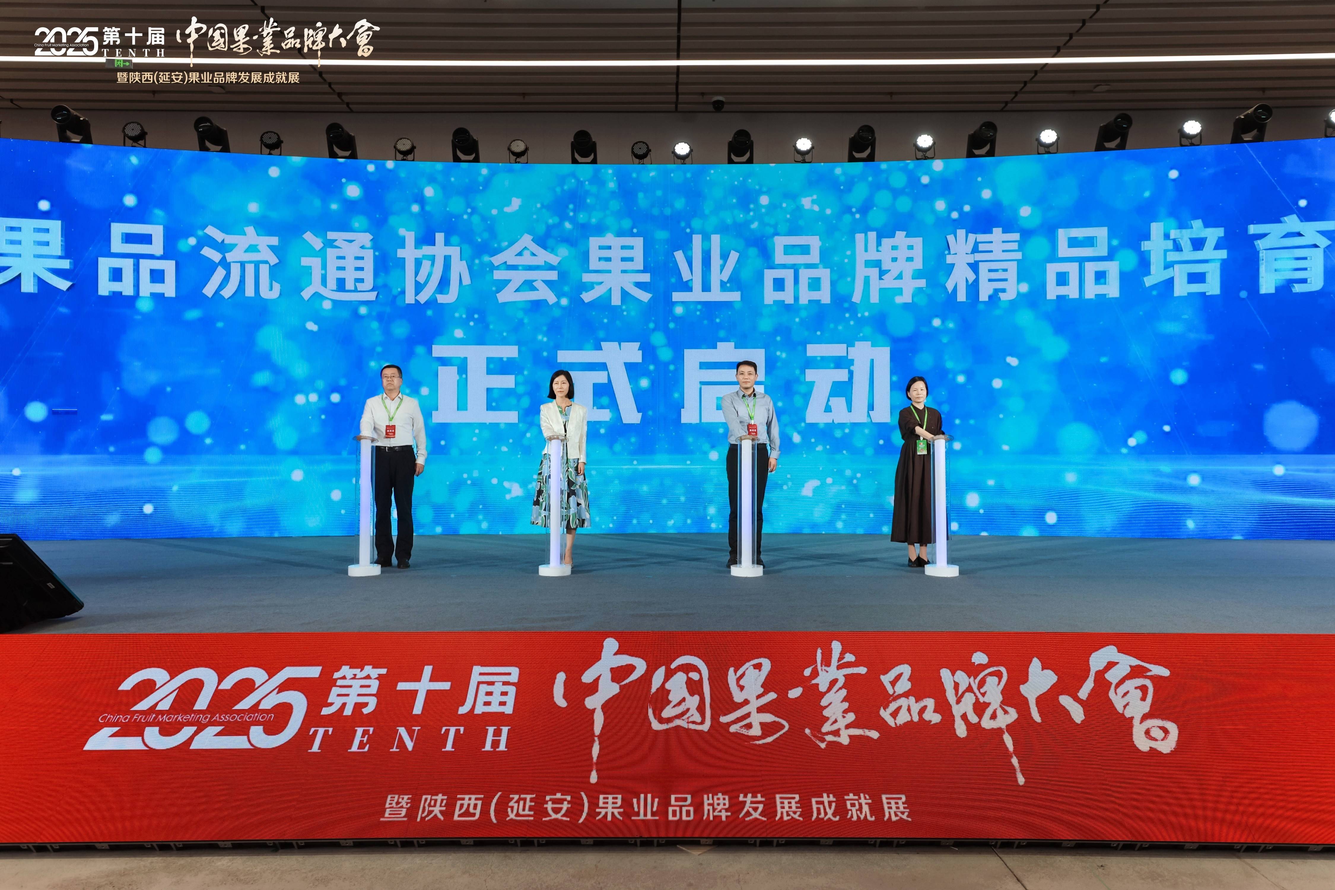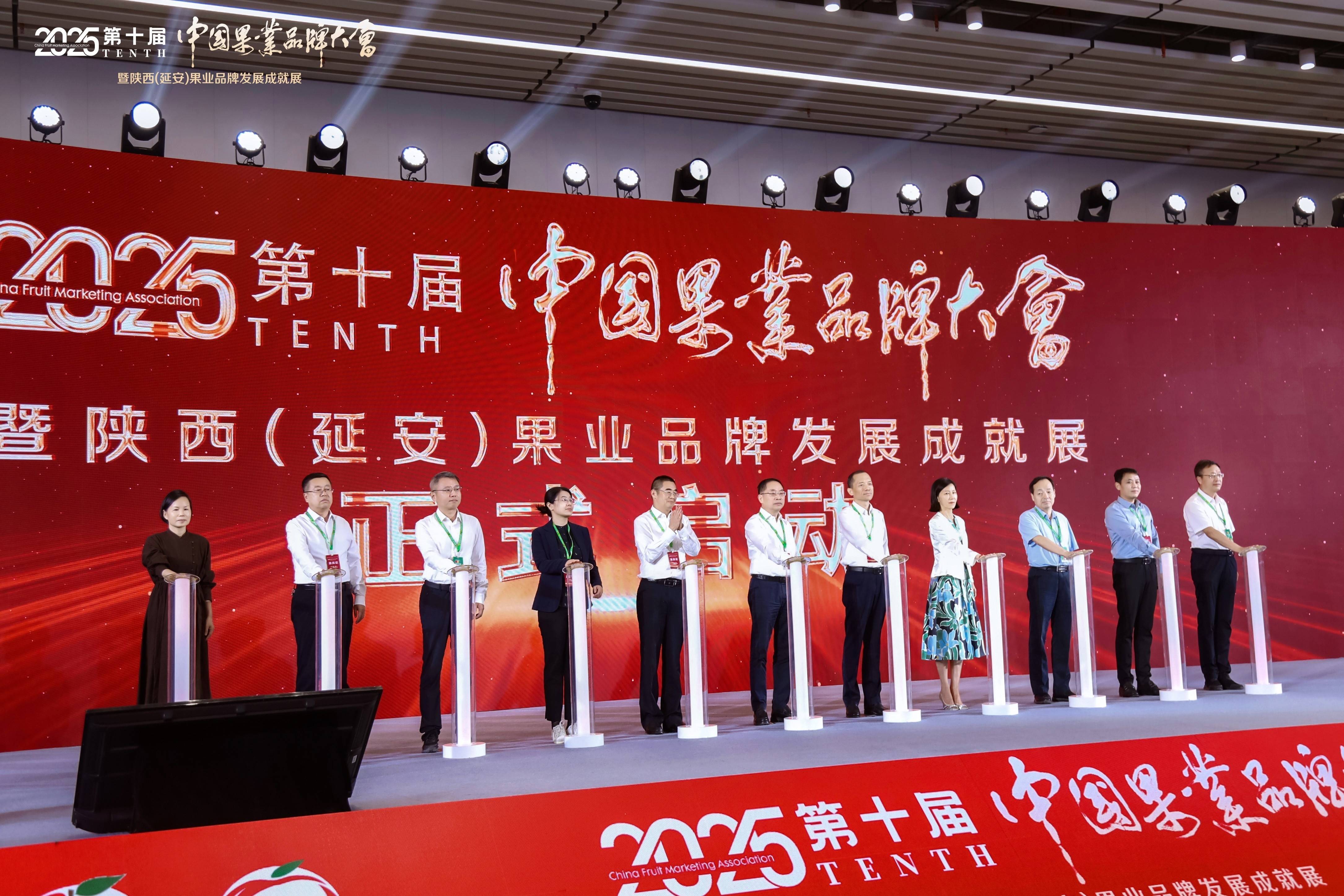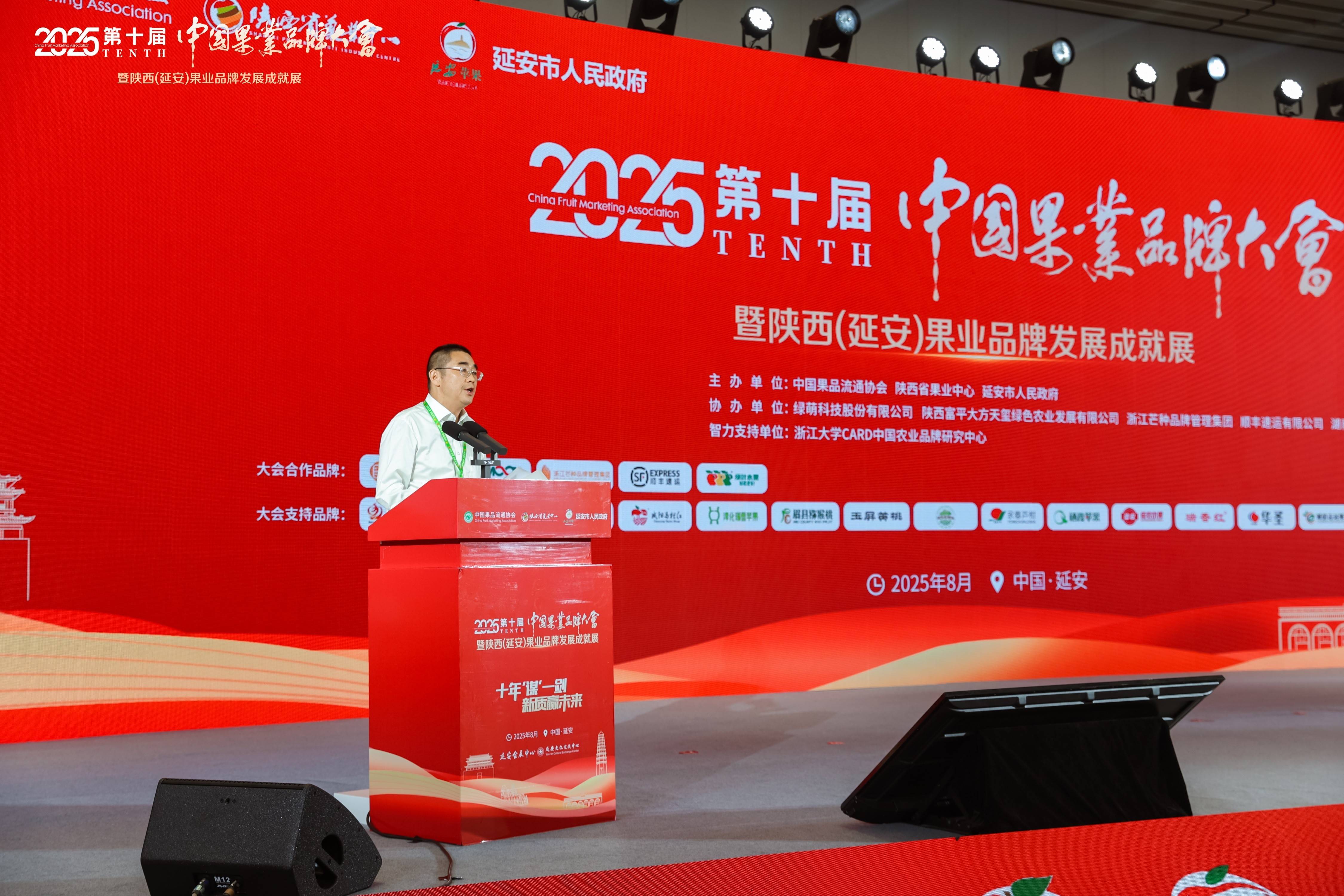 本次大会以“十年谋一剑、新质赢未来”为主题,邀请了中华全国供销合作总社监事会副主任苏泽文,陕西省延安市人大常委会党组书记、主任王军营,中国果品流通协会会长鲁芳校,中华全国供销合作总社科教社团部一级巡视员、中国果品流通协会常务副会长、法定代表人张建萍,中华全国供销合作总社科教社团部副部长吴蕾,陕西省农业农村厅副厅长贺军平,陕西省供销合作社党组成员、监事会主任马烈,陕西省市场监督管理局二级巡视员马生学,陕西省果业中心主任赵广柱,陕西省果业中心党委书记宋勇,中共江西省赣州市委常委、市政府副市长黄蓬勃,陕西省延安市政府副市长张世保,知名经济学家马光远,浙江大学CARD中国农业品牌研究中心主任、浙江永续农业品牌研究院院长胡晓云等出席大会开幕式。吸引了来自全国近百个果品主产区的政府代表、果品企业负责人、果业服务商、媒体记者等业内近千人参会。