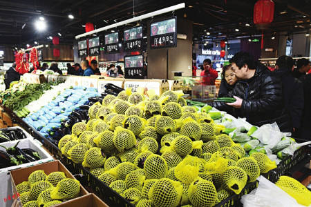 1月25日,一场降雪,为城市披上银装。这场大雪,也给神农美特好带来一场关于服务与应急的“加试”。1月26日,神农美特好双塔东街店入口,崭新的防滑垫从门外一直延伸到室内主要通道,并有工作人员不断清扫积雪、提示顾客小心地滑。服务台旁设立了临时的“热水供应站”,为清扫积雪的环卫工人和感到寒冷的顾客提供一杯暖饮。对于购买较多商品的老年顾客,身穿志愿者马甲的工作人员会主动上前,帮忙进行商品搬运。店内,生鲜货品供应充足,补货及时,并未因天气受到影响。收银线也运行流畅,未出现长时间排队现象。