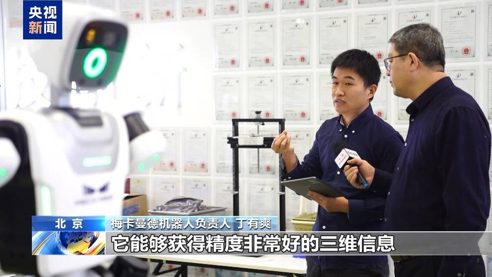 梅卡曼德机器人负责人 丁有爽:机器人去抓取的时候,它进行高精度的扫描和拍照,获得精度非常好的三维信息。“大脑”部分决定了能不能快速对未知物品进行识别、定位和规划的能力,“手部”的灵巧操作,会对各种各样的货品进行非常高成功率的操作。