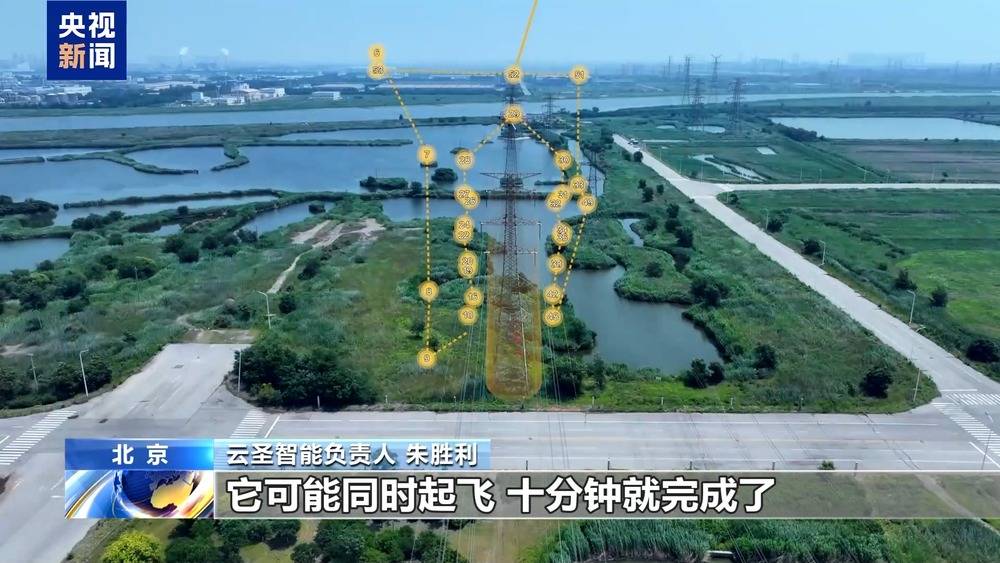 云圣智能负责人 朱胜利:我们把无人机实现“机、网、云”一体化,数据实时回传、实时处理、实时存储,整个过程变得非常高效,整个集群进行作业,效率更高。比如巡检整个1000公里的输电线路,它可能同时起飞,十分钟就完成了。