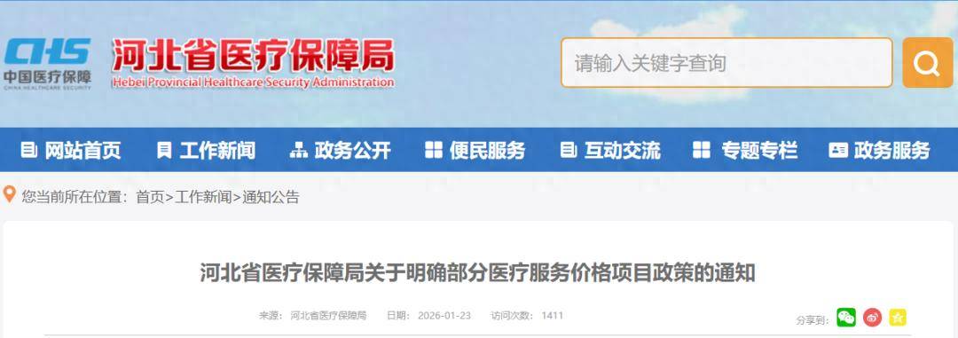 近日,河北省医疗保障局官网发布关于明确部分医疗服务价格项目政策的通知↓↓↓