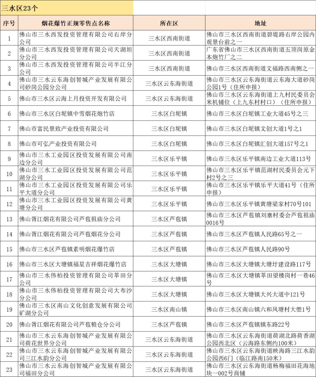 其中三水区23个