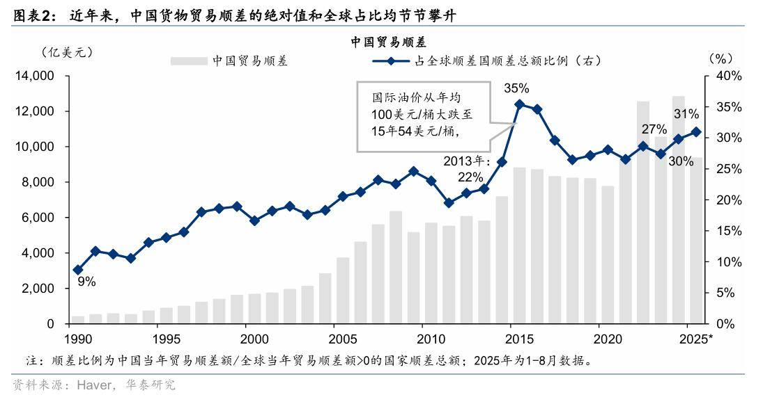 第一,人民币实际有效汇率在2022年4月至2025年6月累计回调近20%,2025年下半年回升约3%,仍具有较强竞争力。第二,近年来,随着中国企业产品竞争力的不断增强,中国贸易顺差的绝对值和全球占比持续上升,支持人民币升值。第三,中国企业和金融机构长期偏好超配海外资产,随着人民币升值,有望向标配回归,带来跨境资本的回流,与人民币升值形成正循环。此外,若中美经贸政策的进一步缓和或国内财政进一步发力扩内需,则人民币升值潜力更大。