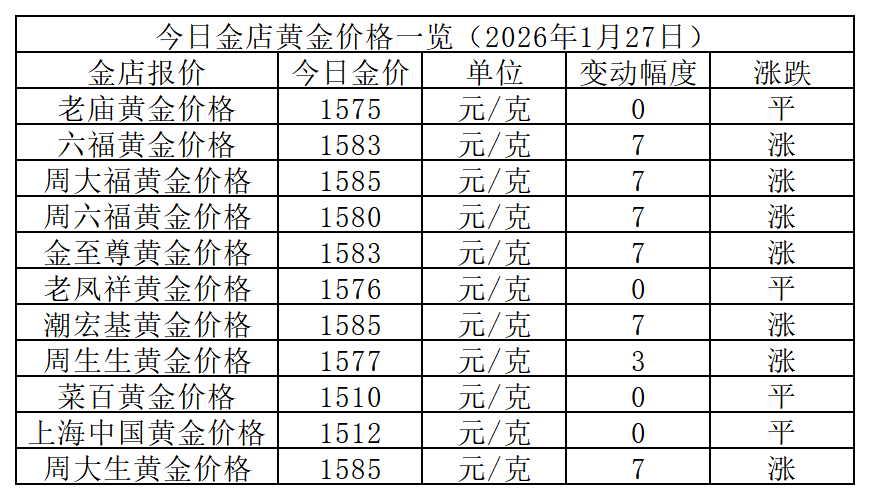以下是各大品牌金店详细报价: