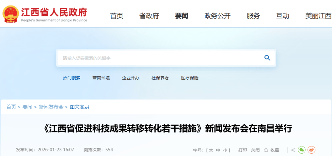 1月23日,江西省政府新闻办、省科技厅联合召开《江西省促进科技成果转移转化若干措施》新闻发布会。省科技厅党组书记、厅长宋德雄发布和介绍有关情况。省委组织部部务委员王玉皞,省委教育工委委员、省教育厅副厅长肖乾,省科技厅党组成员、副厅长席宏,省工业和信息化厅党组成员、副厅长郭启东,省人力资源社会保障厅党组成员、副厅长叶志忠出席新闻发布会,并回答记者提问。省委宣传部对外新闻处副处长黎超权主持新闻发布会。