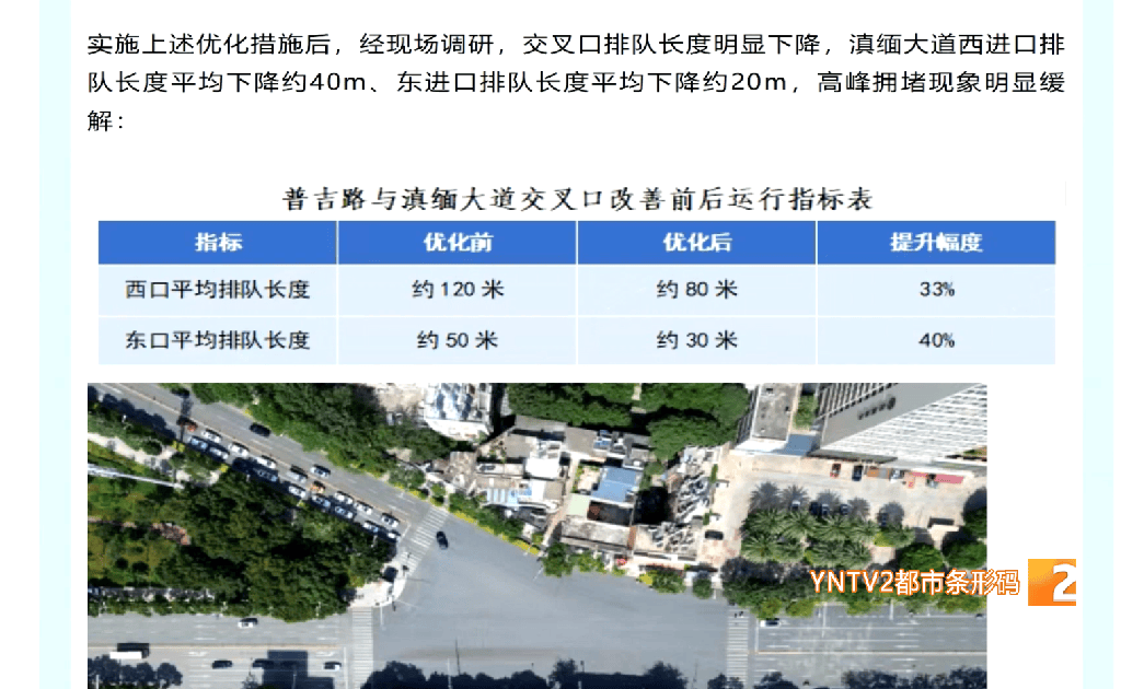 交管部门的数据显示,经过优化调整后,滇缅大道西进口排队长度平均下降约40米,东进口排队长度平均下降约20米,早晚高峰时段拥堵情况得到明显缓解。(记者马纯康 郑雪飞)