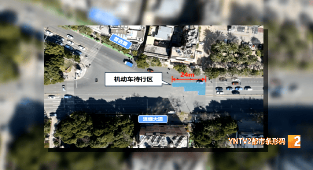记者 马纯康:“滇缅大道和普吉路交叉口刚好是个三岔口,中间有个绿化带,驾驶人的视野被挡住了,左转的话差不多要转180度的大弯。现在设置了40米长的左转待转区后,车辆就可以向前走,左转时驾驶人的视野可以看清普吉路上的车辆情况,就比较安全。”