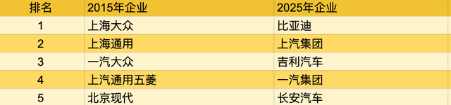 吉利和奇瑞曾是自主品牌的扛旗者,2015年前后它们尚在前十边缘徘徊。而2025年这两家分别位列前三和第六。吉利的极氪、银河等新能源品牌全面开花,黑马奇瑞增长的核心动力在出口, 2025年奇瑞出口超 134 万辆,支撑了其整体排位的跃升。