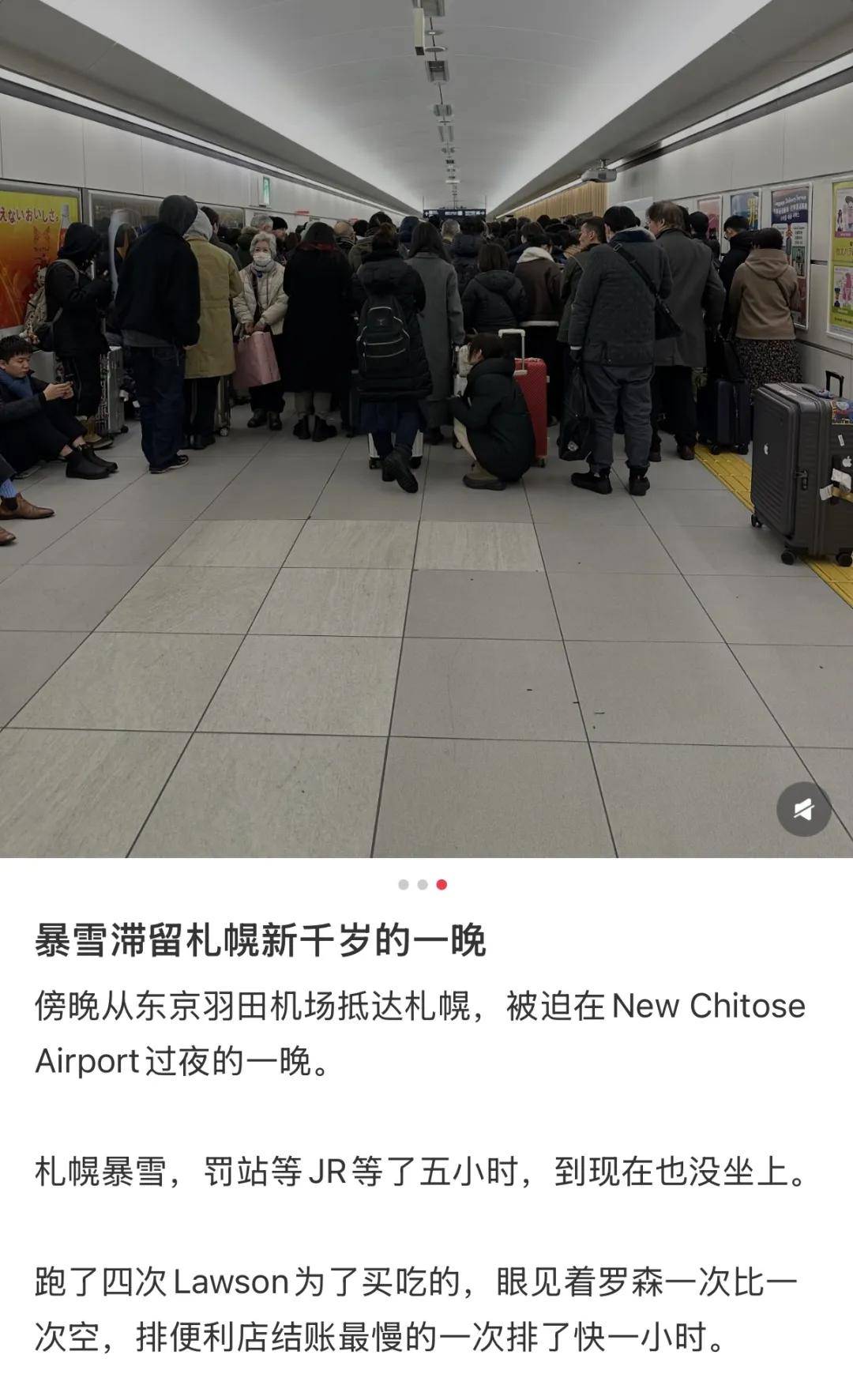 据共同社报道,在札幌站附近一条地下通道里,25日晚约340人在此过夜。
