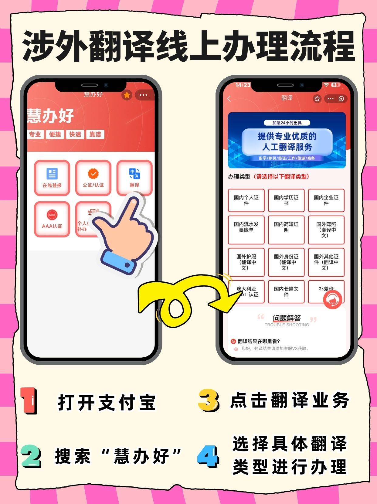☞ 最后别漏格式和信息,原文的公章位置、医生签名,翻译件得对应保留,也不能删减病情描述、治疗建议这些关键内容。嫌麻烦的话,可用“慧办好”小程序,能省不少核对功夫。