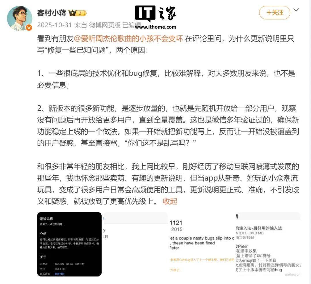 在去年,微信员工 @客村小蒋 曾确认微信功能更新用的是“灰度放量”。