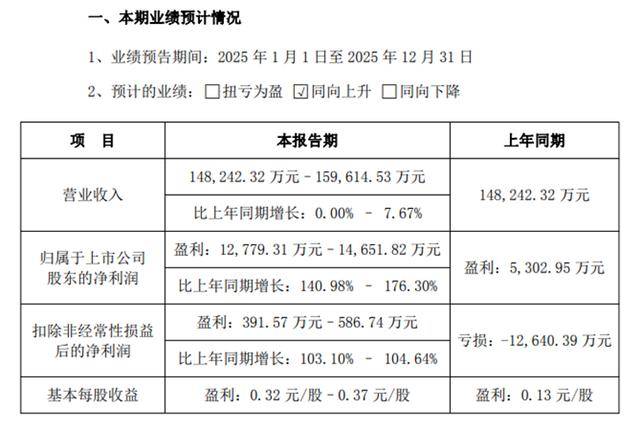 业绩预告显示,迪阿股份预计2025年实现营业收入14.82亿元至15.96亿元,较上一年最高增幅7.67%;归母净利润1.28亿元至1.47亿元,同比增长140.98%至176.30%,净利润有望创过去3年新高;扣非净利润391.57万元至586.74万元,较上一年的亏损实现扭亏为盈。公司自2025年第二季度起已连续三个季度实现利润同比正增长,标志着其前期渠道结构优化与门店精细化运营的成效持续释放,公司盈利水平已得到实质性修复。