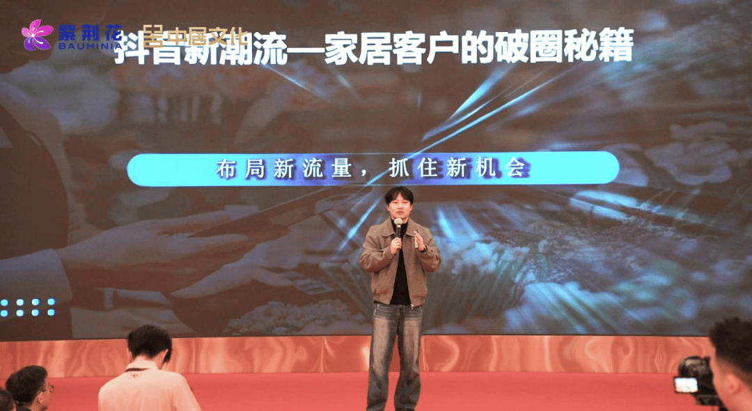 抖音官方特邀嘉宾易钊洋先生分享了“抖音新潮流 家居客户的破圈秘籍”,深度解读抖音官方对家居建材行业的发展趋势判断与流量扶持政策,为2026年紫荆花新零售业务开拓指明政策方向。