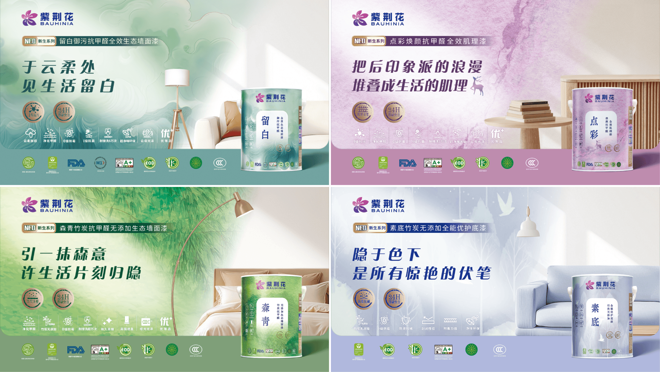 - 零售渠道:推出紫荆花NEO新生系列乳胶漆新品,包含“留白、点彩、森青、素底”四款兼具东西方美学与性能的产品。NEO新生系列寓意新生,坚守唯一初心,彰显紫荆花立足行业标杆的魄力。新产品定位和包装设计已轻盈跨越东西方美学疆界,兼具东方的写意与雅致,与西方的现代与格调巧妙相融,精准呼应了年轻人群对理想生活的本能向往。