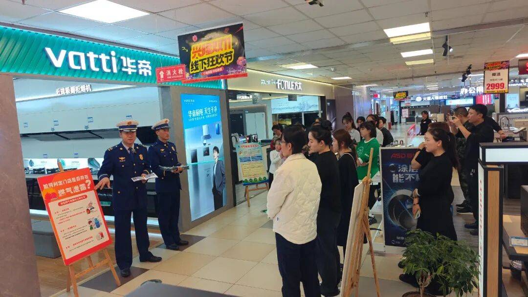 一进商场,氛围感直接拉满!这里的“广告位”,不卖商品,只“卖”安全。在家电区,大大的标语和科普漫画就立在最显眼的地方,告诉你家电怎么用才最“长寿”、最安全。电视墙屏幕“不播剧集,播安全”,齐刷刷滚动着防火海报和警示片,视觉冲击力超强!另一边厨具区,小小提示牌立在燃气灶边,针对“厨房重地”的各种安全隐患,给出最贴心的提醒。