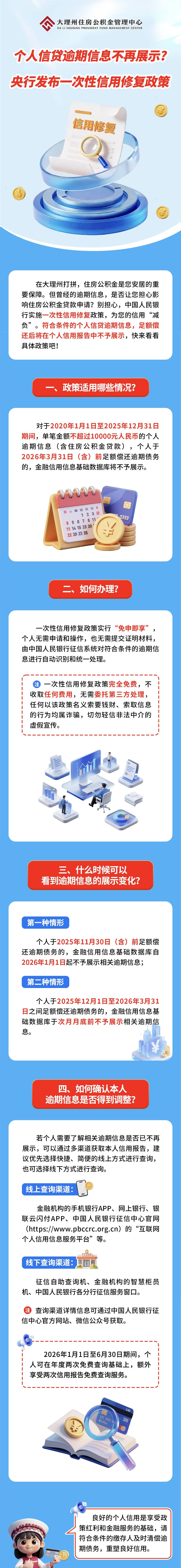 个人信贷逾期信息不再展示?央行发布一次性信用修复政策