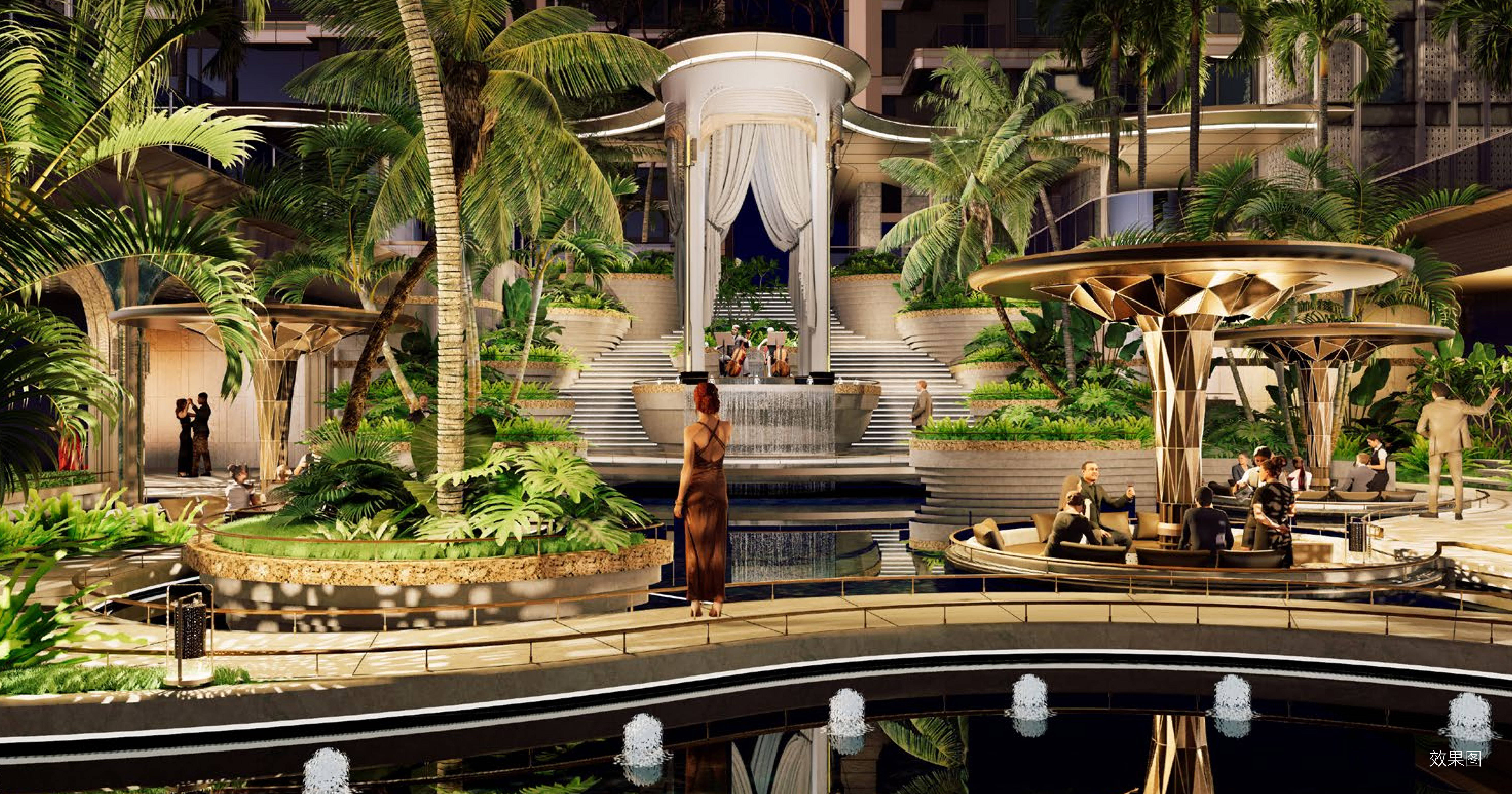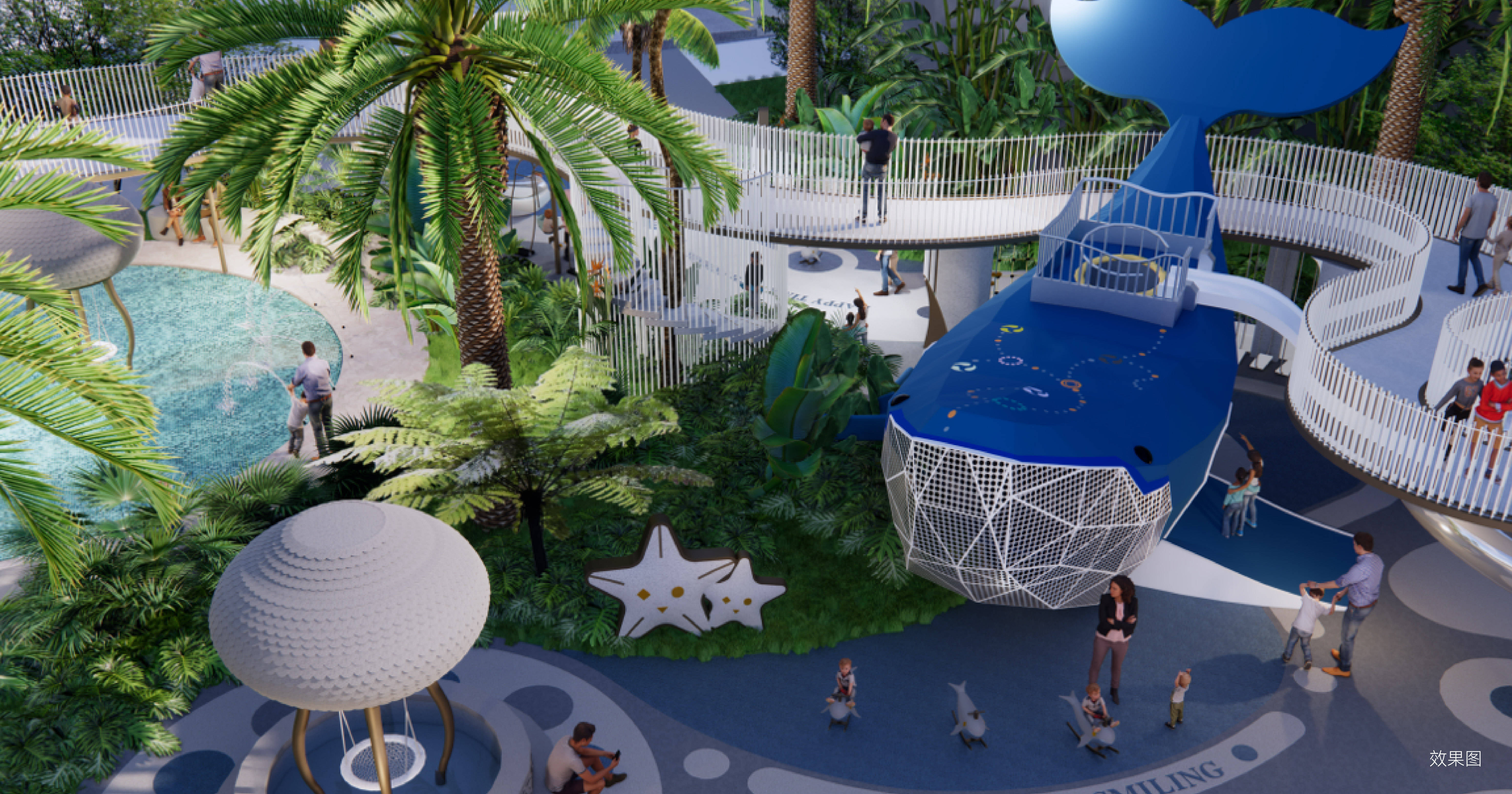 ✦ 六大组团:鹿岛泛舟|时光浮岛|椰风林影|艺境花园|童梦天地|星光跑道