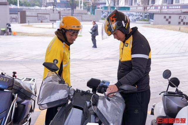 得知两人的送单范围主要在五一商圈,胡铁军不忘提醒:“五一商圈有些区域禁止电单车停放,你们平时多留意,把车停到指定位置,既安全又省心。”