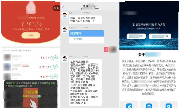 1.虚假福利类欺诈:通过虚构“刷单返利”“高额抽奖”“现金红包”“购物补贴”等活动,诱使用户参与并支付费用、提供个人信息或完成特定任务,最终无法兑现承诺或直接失联。