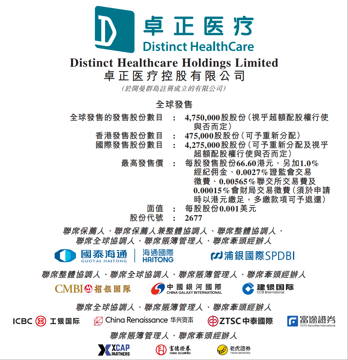 1月29日,国内中高端医疗服务机构卓正医疗启动公开招股,招股期为1月29日至2月3日,预计2月6日于港交所主板上市。本次全球发售475万股,发行价区间为57.7至66.6港元,联席保荐人为海通国际与浦银国际。