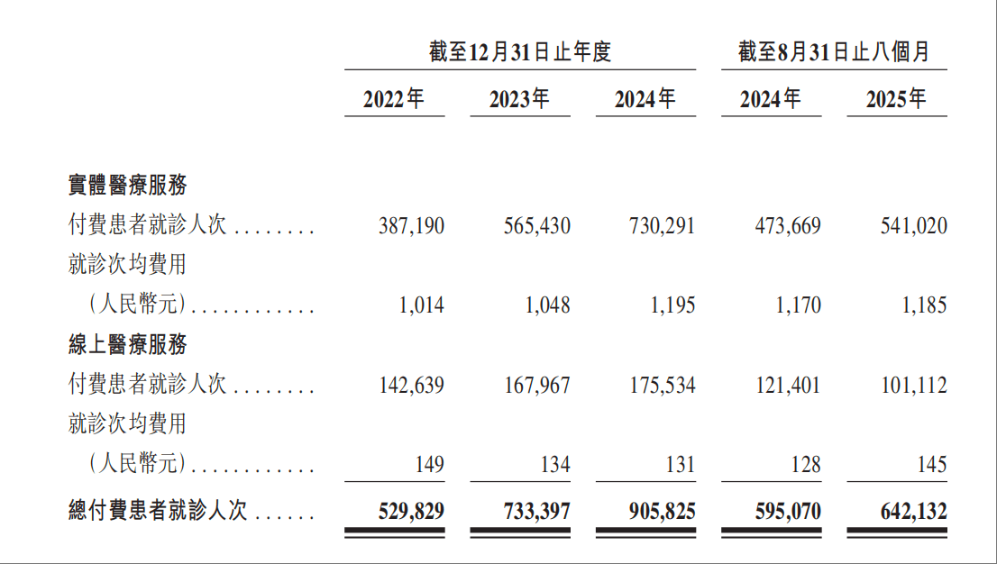 尽管2025年首八个月线上平台的就诊人次有所回落,卓正医疗通过产品结构升级实现“以价补量”,线上服务次均费用得以提升。