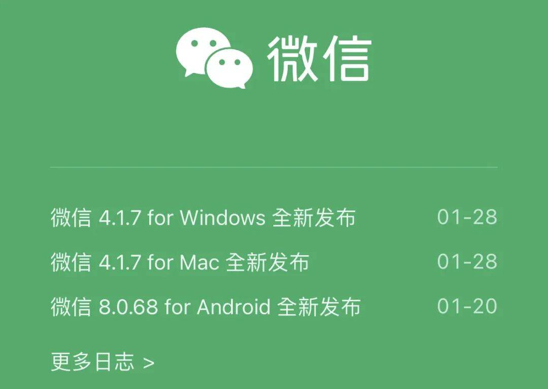 紧接着,微信官方团队在昨天正式发布了电脑版微信的最新版本,版本号为 4.1.7 正式版,包含Windows 与 Mac 2个版本,实现了双版本统一更新的效果。