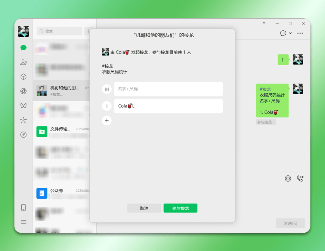 在经过微信官方团队的优化之后,如今在电脑版微信中也可以使用这个微信群接龙功能了,而且使用也很方便。