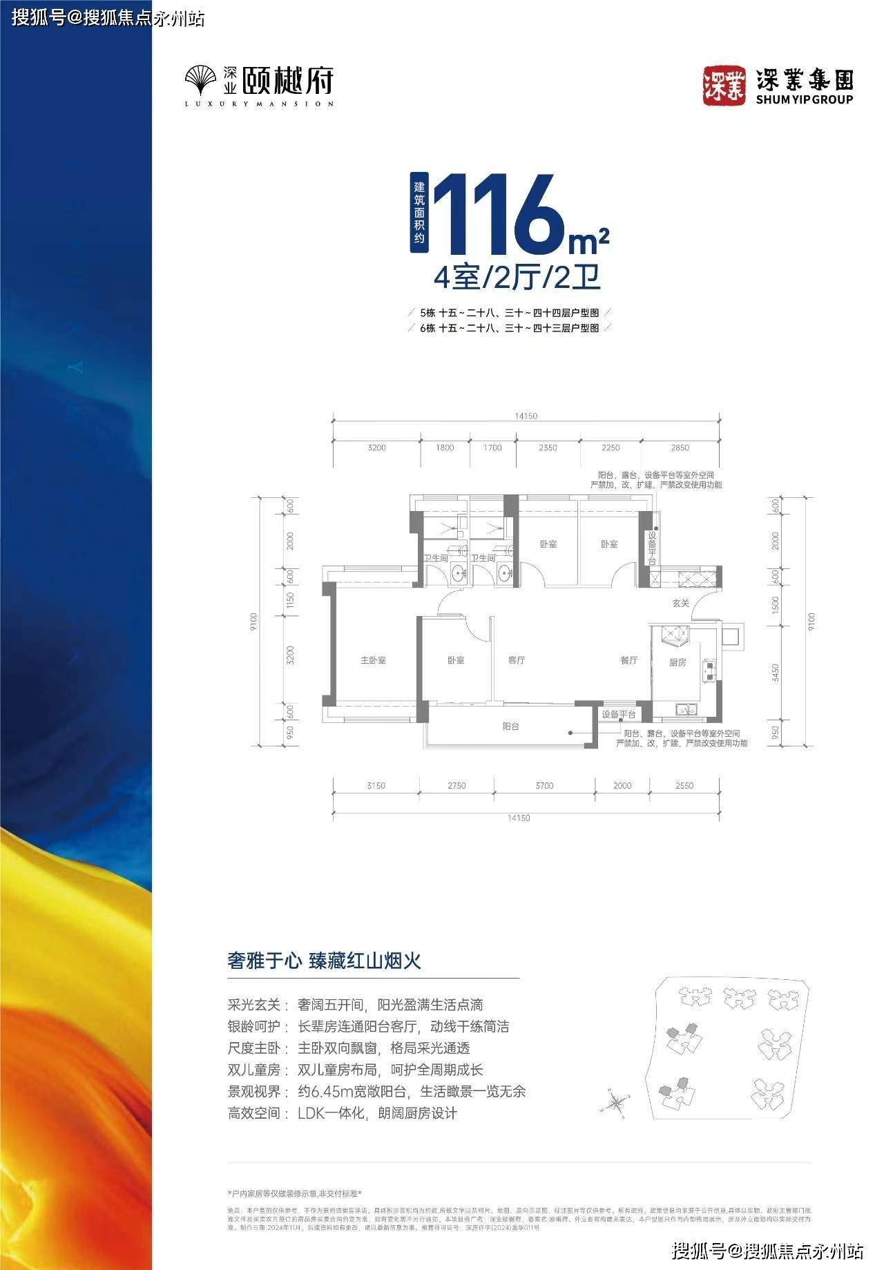 龙华红山「深业颐樾府」将推出最后一栋住宅-6栋,共252套房源,面积有99㎡的3房2卫,116㎡的4房2卫户型,计划2025年9月20日送精装交房,上次推出的5栋是简装交付。