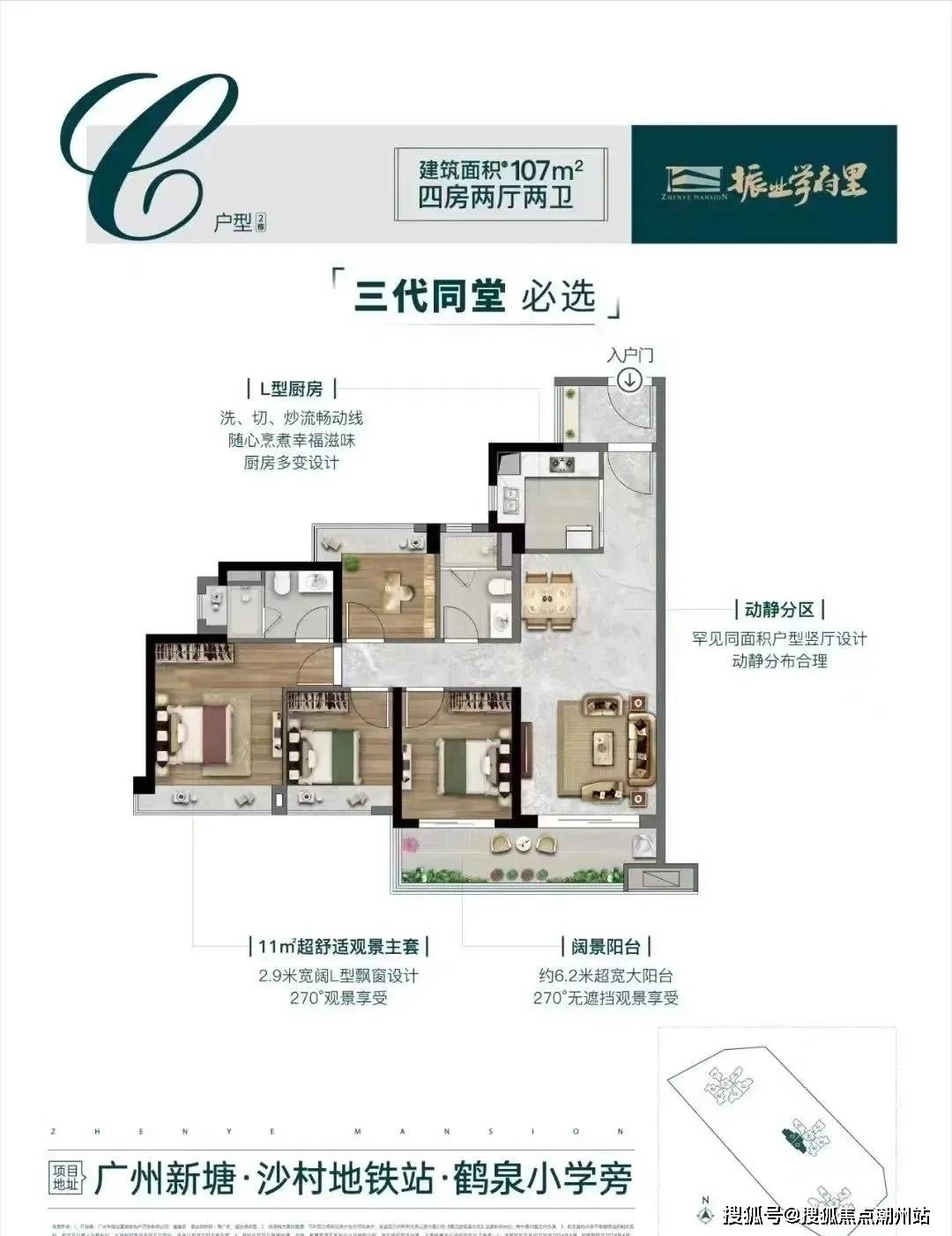 建面约107㎡的四房,尺度更加豪横,能够轻松匹配三代同堂的居住需求。