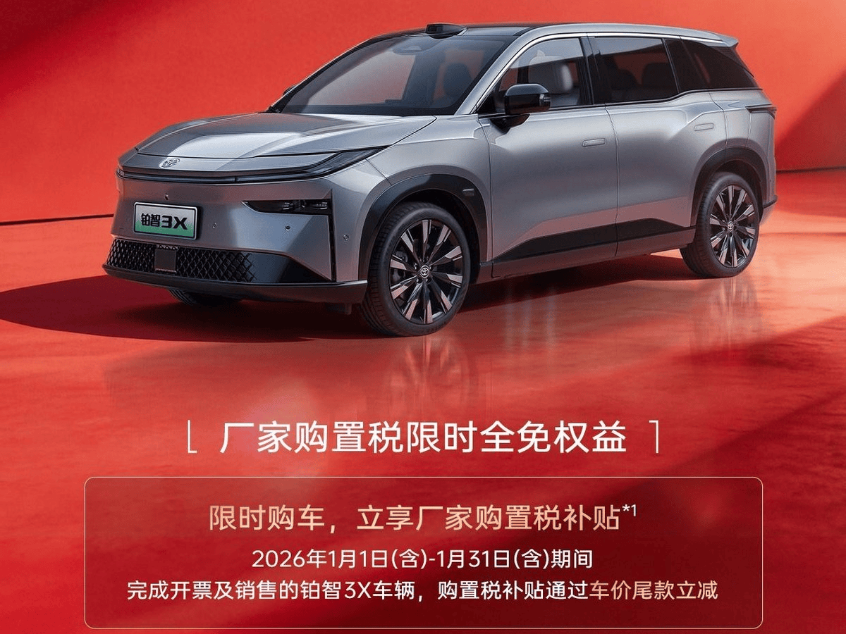广汽丰田旗下的铂智3X在1月底之前兜底购置税;
