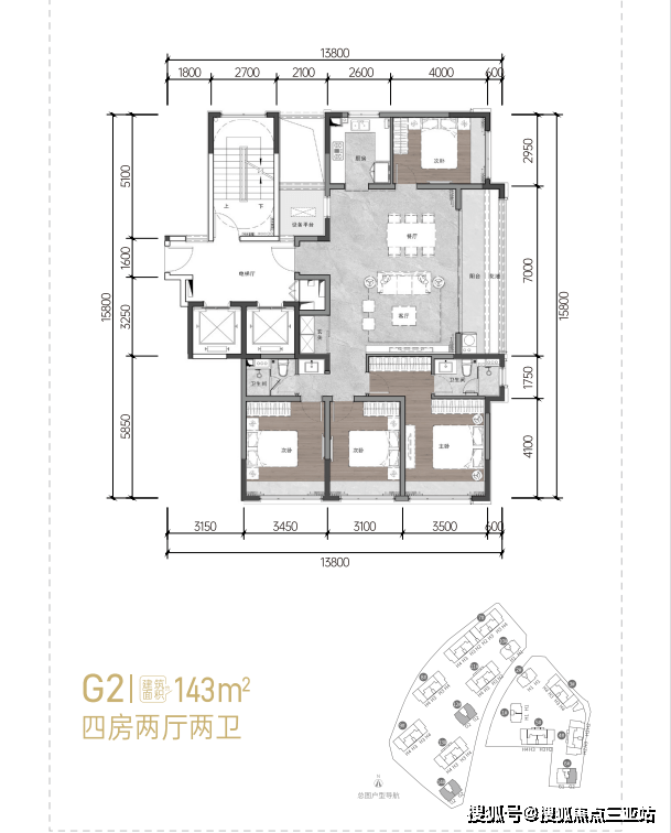 142㎡:四房两厅两卫