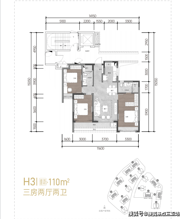 108㎡:三房两厅两卫