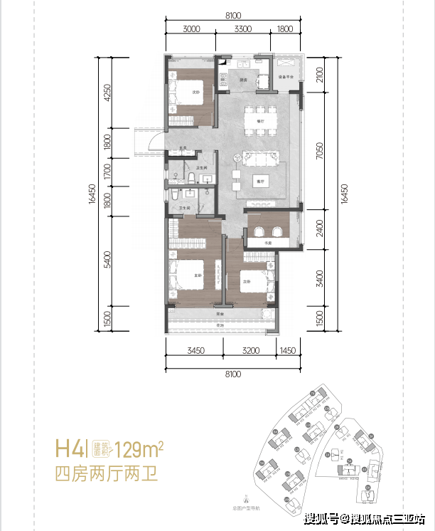 128㎡:四房两厅两卫