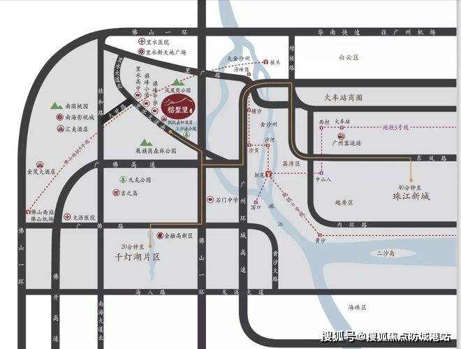 位置属于广州西稀缺的纯墅区。项目靠山望湖,生态资源得天独厚。周边立体交通路网发达,五条高速路、六条城市主干道交织,10分钟车程直达白云区,20分钟进入荔湾和越秀,40分钟就能到珠江新城。广佛通勤非常友好,日常上班或周末进广州都不费力。对于广佛两城生活频繁切换的家庭来说,这里位置拿捏得刚刚好,既享受里水的低密度,又不失城市繁华。