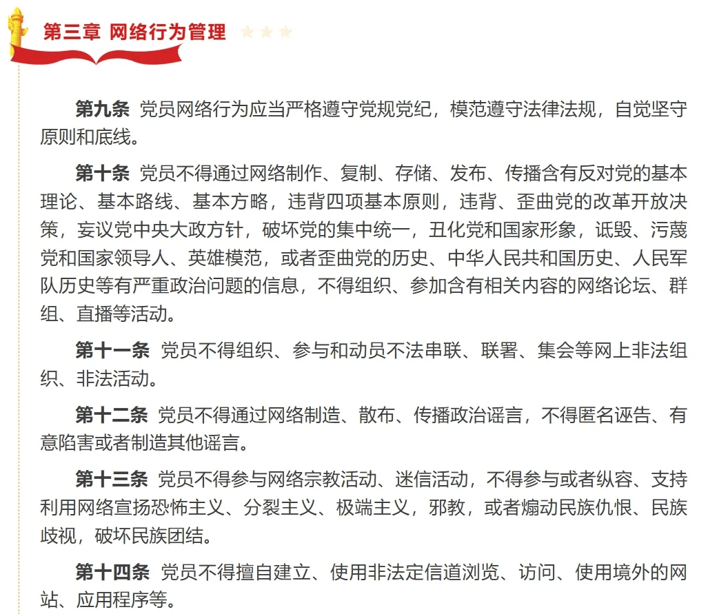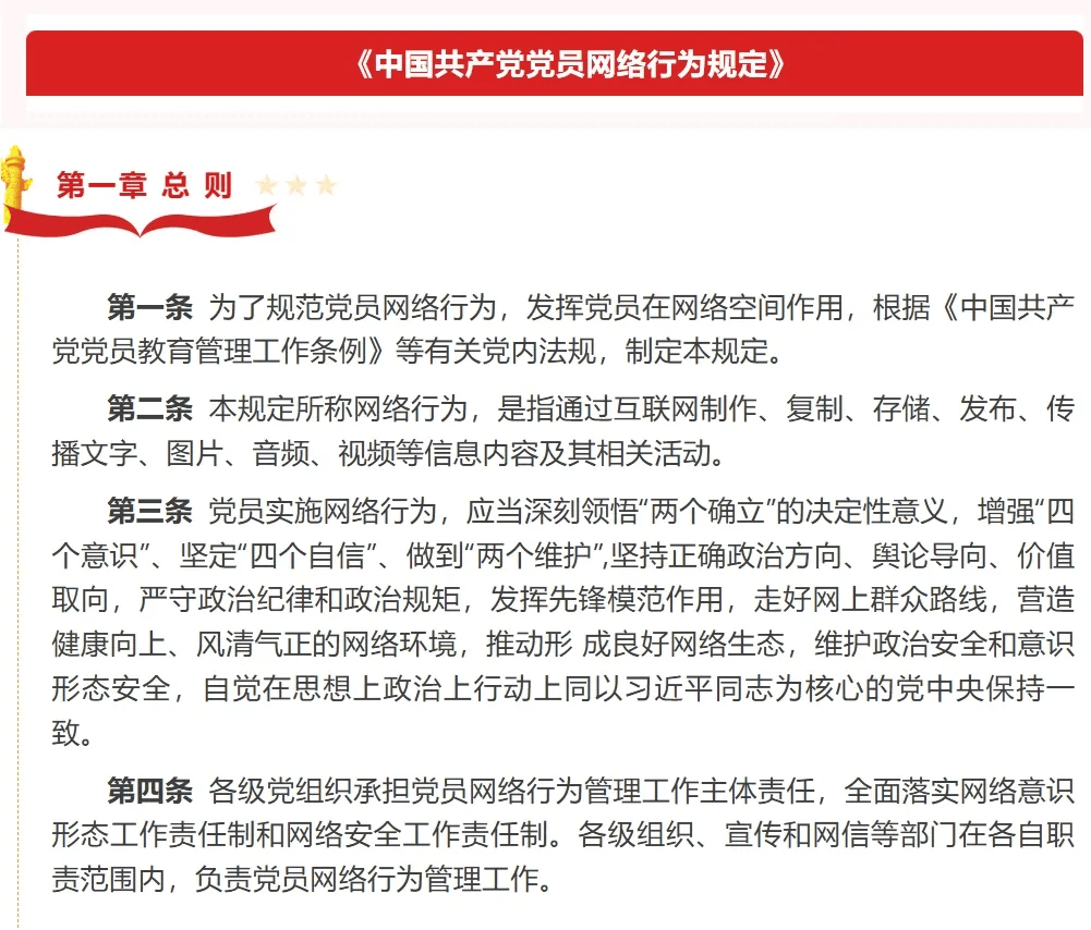 《中国共产党党员网络行为规定》是2024年1月14日由中共中央办公厅发布的。它是第一部规范党员网络行为的党内法规,自发布之日起施行。