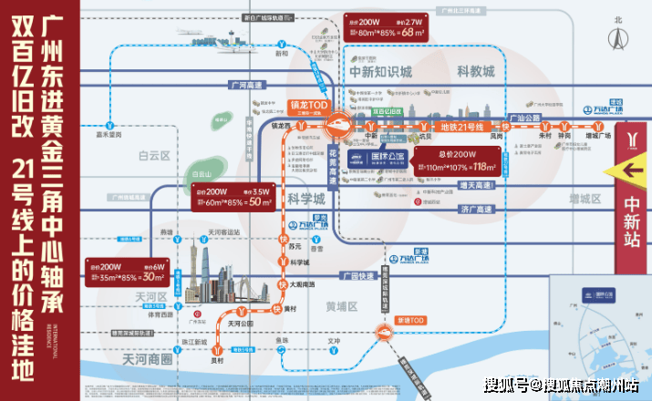 中新TOD新城崛起,势不可挡;以中新TOD为始发核芯,“地铁+城轨+高速+枢纽”四维交通网连接科学城、中新知识城、科教城三城产业,领衔广州东进大势下一个黄金20年。